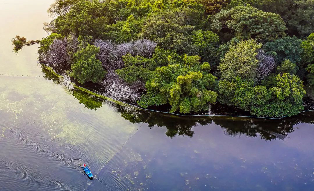 流花湖湖水清澈見底,水下植物生長良好,形成的“水下森林”發(fā)揮作用,湖水水質(zhì)煥然一新,湖水生態(tài)的提...