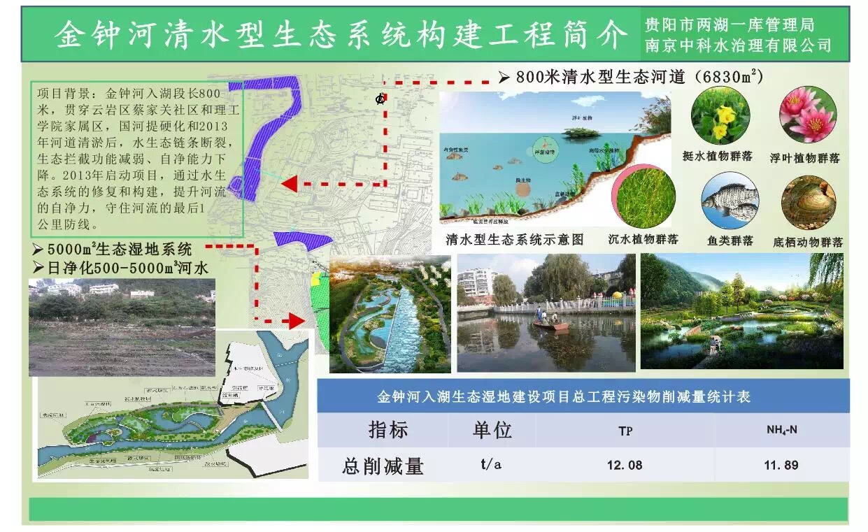 隨著經(jīng)濟(jì)社會(huì)的快速發(fā)展、城市人口的迅速增長,城市污水處理設(shè)施、收集管網(wǎng)建設(shè)嚴(yán)重滯后,黑臭河道問題長時(shí)間無法解決。今年年初,貴州省政府印發(fā)《貴州省水污染防治行動(dòng)計(jì)劃工作方案》:明確到2017年,貴陽市建成區(qū)基本消除黑臭水體。在此背景下,貴陽市兩湖一庫管理局對阿哈水庫流域進(jìn)行綜合整治。阿哈水庫金鐘河入湖段生態(tài)治理項(xiàng)目是阿哈水庫流域進(jìn)行綜合整治的項(xiàng)目之一,為防治環(huán)境污染,充分發(fā)揮和強(qiáng)化河流自身的凈化能力,同時(shí)兼顧景觀設(shè)計(jì),采用我公司清水型生態(tài)系統(tǒng)構(gòu)建技術(shù)對金鐘河流域水體污染進(jìn)行防治。