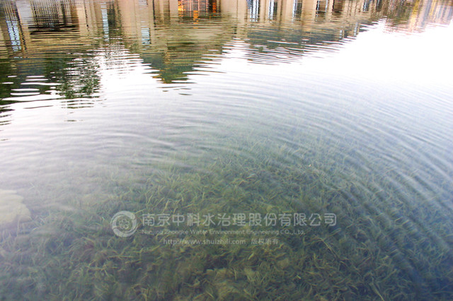 復(fù)地御香山二期景觀湖為新開(kāi)挖人工湖體。業(yè)主要求通過(guò)建立健康、穩(wěn)定、經(jīng)濟(jì)的清水型生態(tài)系統(tǒng)來(lái)保護(hù)湖水水質(zhì),實(shí)現(xiàn)長(zhǎng)效景觀性。水生態(tài)工程施工時(shí)間為2012年3月10日至5月30日。竣工后,復(fù)地御香山二期景觀湖水質(zhì)主要指標(biāo)達(dá)到 《國(guó)家地表水環(huán)境質(zhì)量標(biāo)準(zhǔn)》GB3838-2002 Ⅱ 類標(biāo)準(zhǔn),常年水體透明度在1.7米以上清澈見(jiàn)底,生態(tài)系統(tǒng)健康穩(wěn)定。