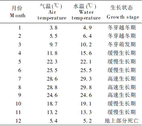 苦草是多年生草本。分布在亞熱帶地區(qū)的苦草( V. natans )冬季地上部分死亡,以冬芽或種子越冬,春季從冬芽或種子開(kāi)始萌發(fā),且隨氣溫上升開(kāi)始緩慢生長(zhǎng),夏季為快速生長(zhǎng)期,最大生物量一般在9月份出現(xiàn)。開(kāi)花期是5~ 8月,結(jié)果期為8~10月,種子成熟期在12月左右。
