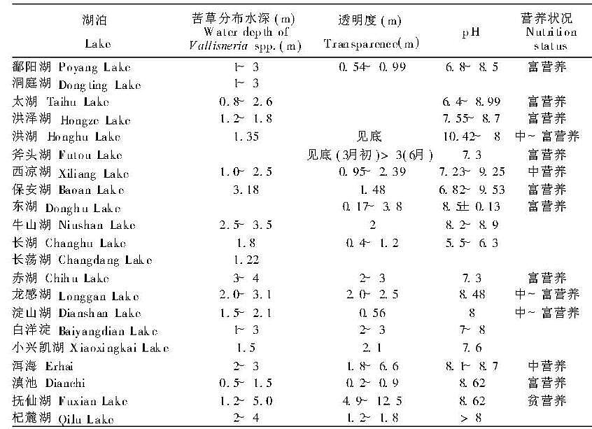 刺苦草是長(zhǎng)江中下游湖泊的優(yōu)勢(shì)物種,苦草為常見(jiàn)種,而密刺苦草(V. denseserrulata)僅有很少分布,苦草和刺苦草常混生于這些湖泊中,形成共存分布格局:刺苦草和苦草種間呈明顯的的帶狀相間分布格局,或苦草只零星分布于刺苦草群落中。