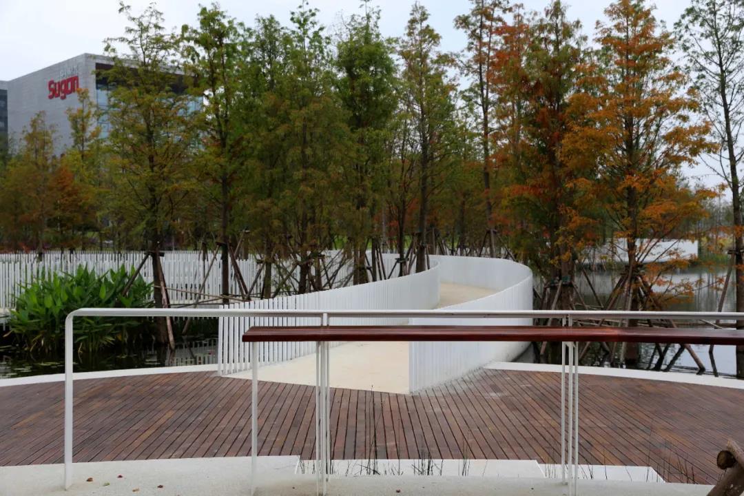 天府新區(qū)不僅僅對湖心島做了地形的處理,同時根據湖心島的高程、與水的關系配置了植物群落以及蜿蜒的弧形岸線等設計,使得湖心島的生物越來越豐富。