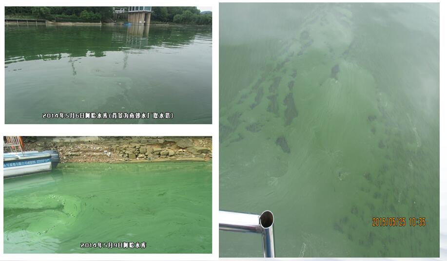 2013年以來,阿哈水庫水體出現(xiàn)富營養(yǎng)化,并且在每年的春夏交替之際(4-5月份),在南郊取水口區(qū)域、大壩區(qū)域等都出現(xiàn)了不同程度的藍藻水華。其中在2015年5月18日的監(jiān)測中,發(fā)現(xiàn)南郊取水口區(qū)域水體中微囊藻毒素-LR的濃度達到了0.889μg/l,逼近1μg/L的含量標準限值(《生活飲用水衛(wèi)生標準》(GB 5749-2006)、《地表水環(huán)境質(zhì)量標準》(GB3838-2002))存在巨大的供水安全隱患。